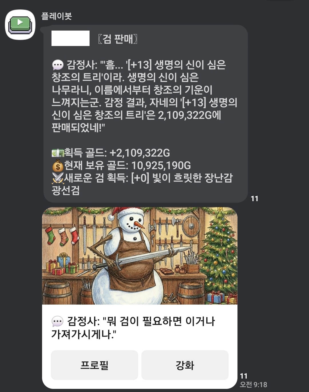 카톡 플레이봇 검 키우기 방 혼자 만드는 방법·카카오톡 대장간 검키우기 with 플레이봇·1:1 그룹