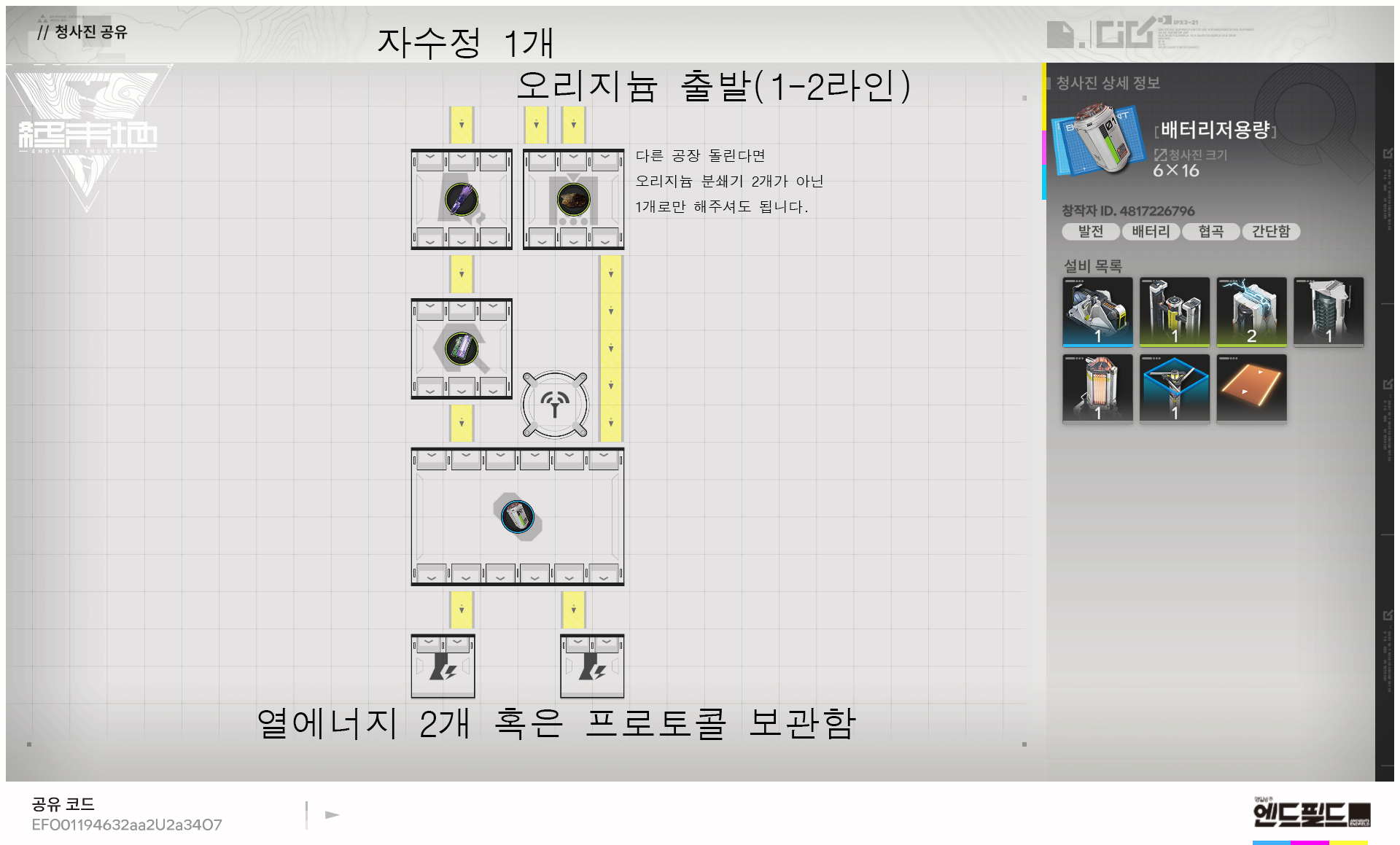 명일방주 엔드필드·모든 지역 배터리 청사진 공유·아시아 서버·Arknights Endfield