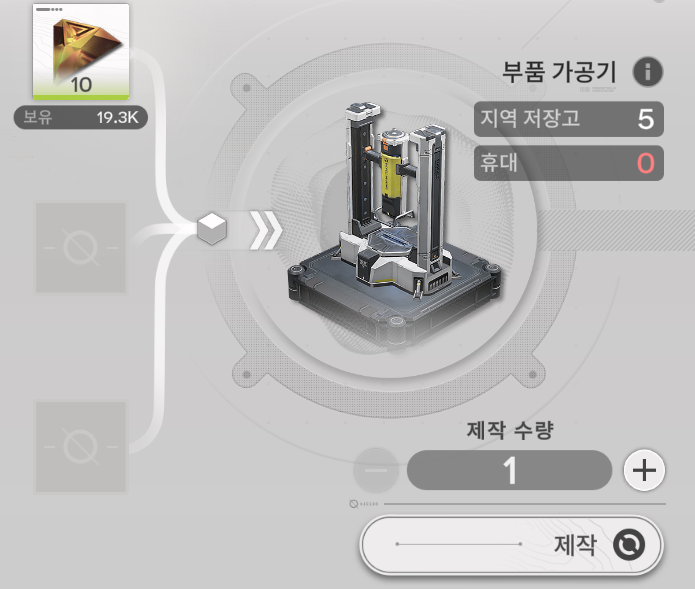 자수정 부품 : 40개, 오리지늄 정제 : 60개, 오리지늄 광석 : 15개