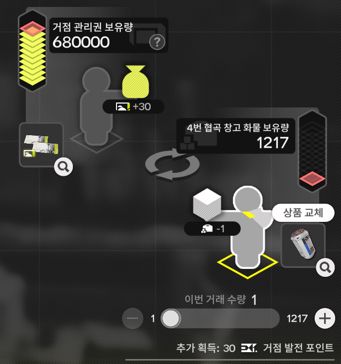 후에는 다른 대피소 거점 관리 레벨업 및 관리비를 버는 용도로 제출이 필요합니다.